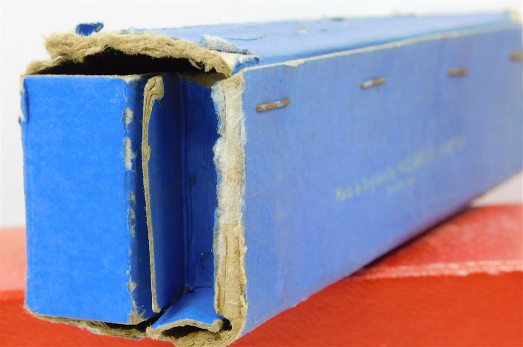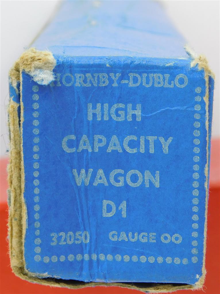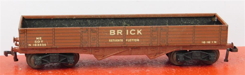 A Hornby Dublo 3 rail bogie brick wagon numbered N163535, brown undertruss, uninsulated metal wheels fitted, in good used condition but needs a clean, supplied in the original box