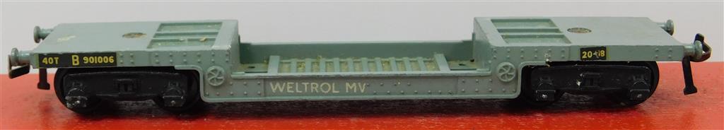 A Hornby Dublo 2 or 3 rail bogie weltrol wagon numbered B901006, plastic wheels fitted, in good used condition but needs a clean, supplied in the original box