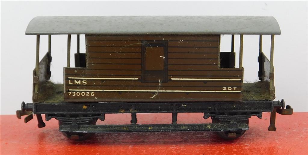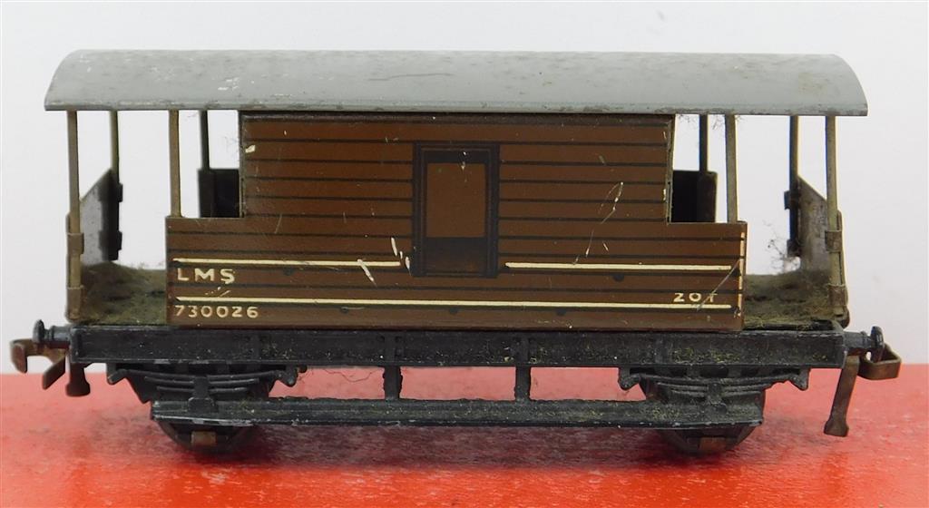 A Hornby Dublo 3 rail tinplate LMS brake van numbered 730026, in poor condition, no original box
