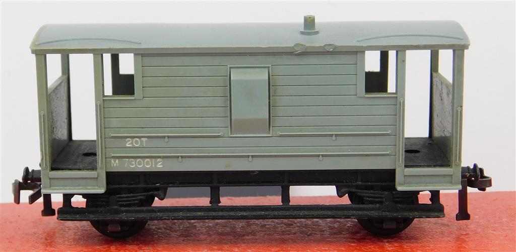 A Hornby Dublo 2 or 3 rail plastic bodied ex LMS brake van numbered M730012, plastic wheels fitted, in good condition, supplied in the original box
