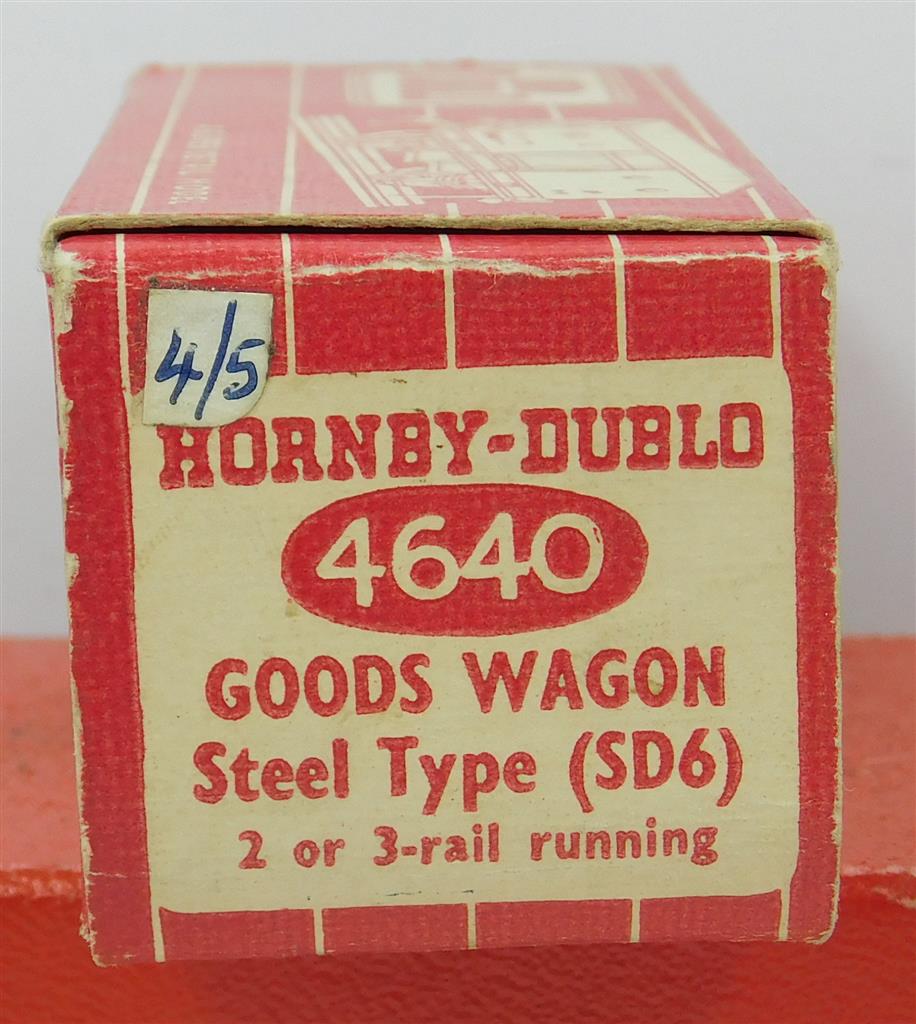 A Hornby Dublo 2 or 3 rail plastic bodied steel mineral wagon numbered B486865, plastic wheels fitted, in good condition, supplied in the original red box
