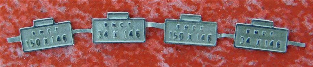 A set of unused etched brass SNCF 150X146 and 34X146 numberplates