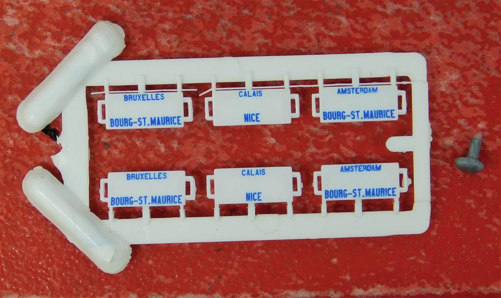 European H0 Projects: Roco printed destination boards Bruxells/Amsterdam - Bourg St Maurice and Calais-Nice
