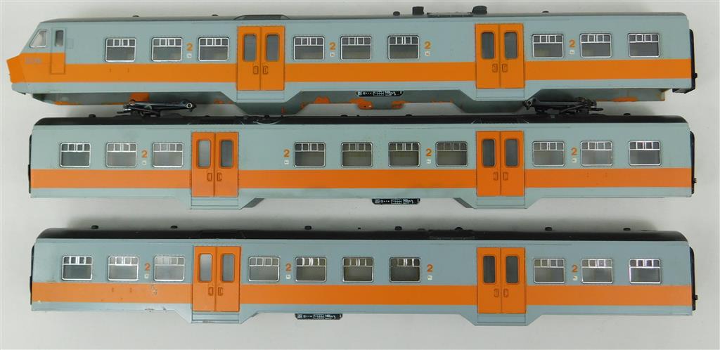 Lima Belgian 3 AM96 type EMU body shells, no chassis parts, one driving trailer, two centre cars, with pantographs