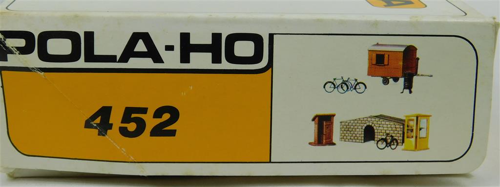 European H0 Accessories: Pola 452 Small bridge, telephone kiosk, privy, cycle and workmans trailer