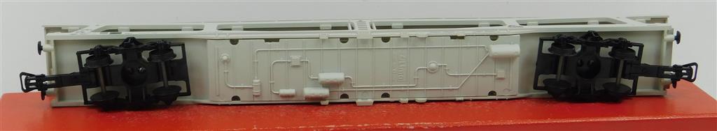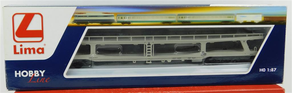 A Lima HL6046 French SNCF bogie car transporter, in good clean condition, supplied in the original box. Metal wheels, pivoted couplings. Previous owner was a smoker.