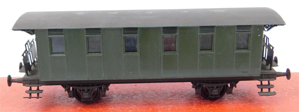 European H0 Coaches: Rivarossi SM305 Italian FS 4 wheel green coach missing coupings