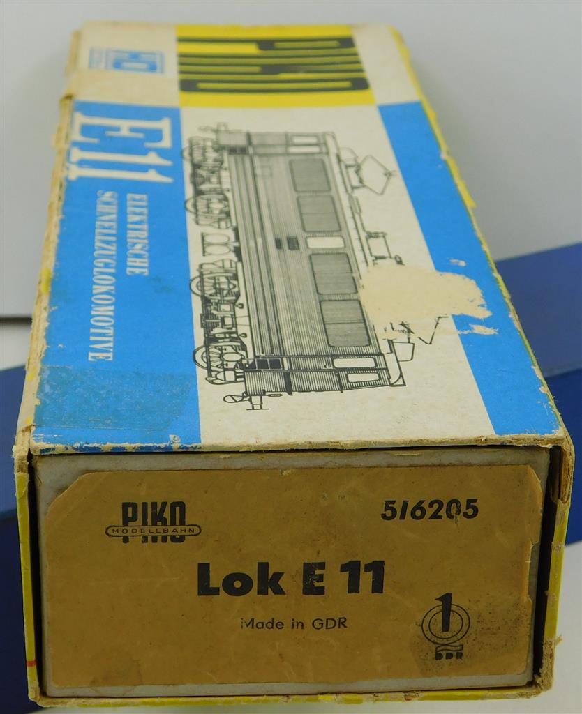 A Piko 5/6205 East German DR E11 electric loco, slow noisy runner, slower in one direction, headlights in one incorrect direction only, in fair condition, supplied in the original box with some odd spares, sold as a project