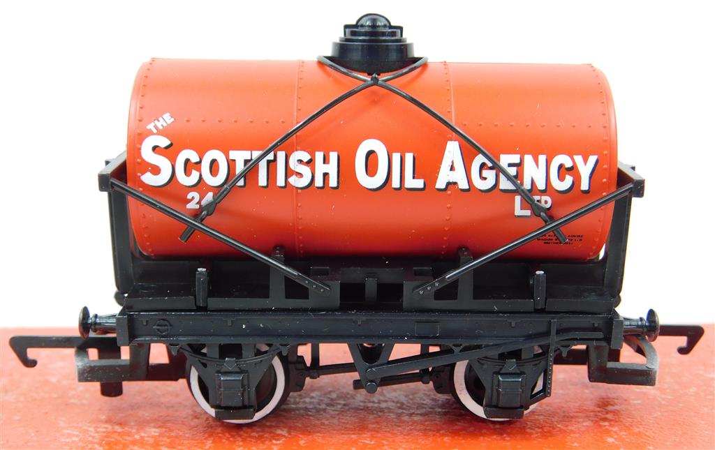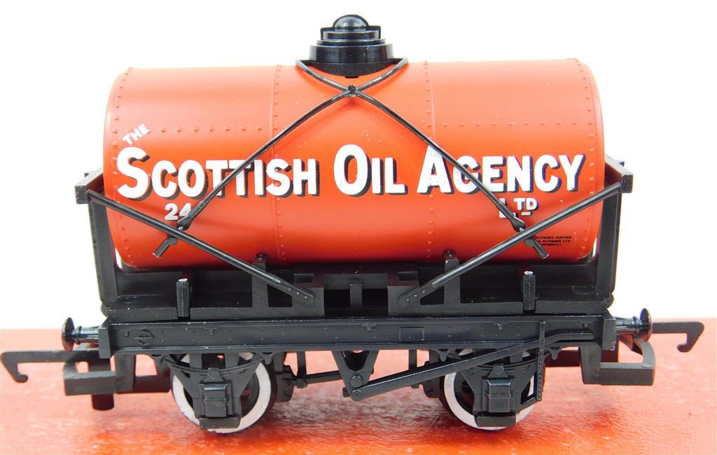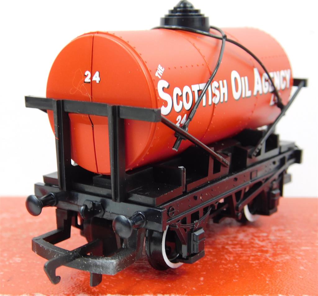 A Hornby R6032 The Scottish Oil Agency tank wagon number 24, broken stay wires, needs a clean, supplied in the original box
