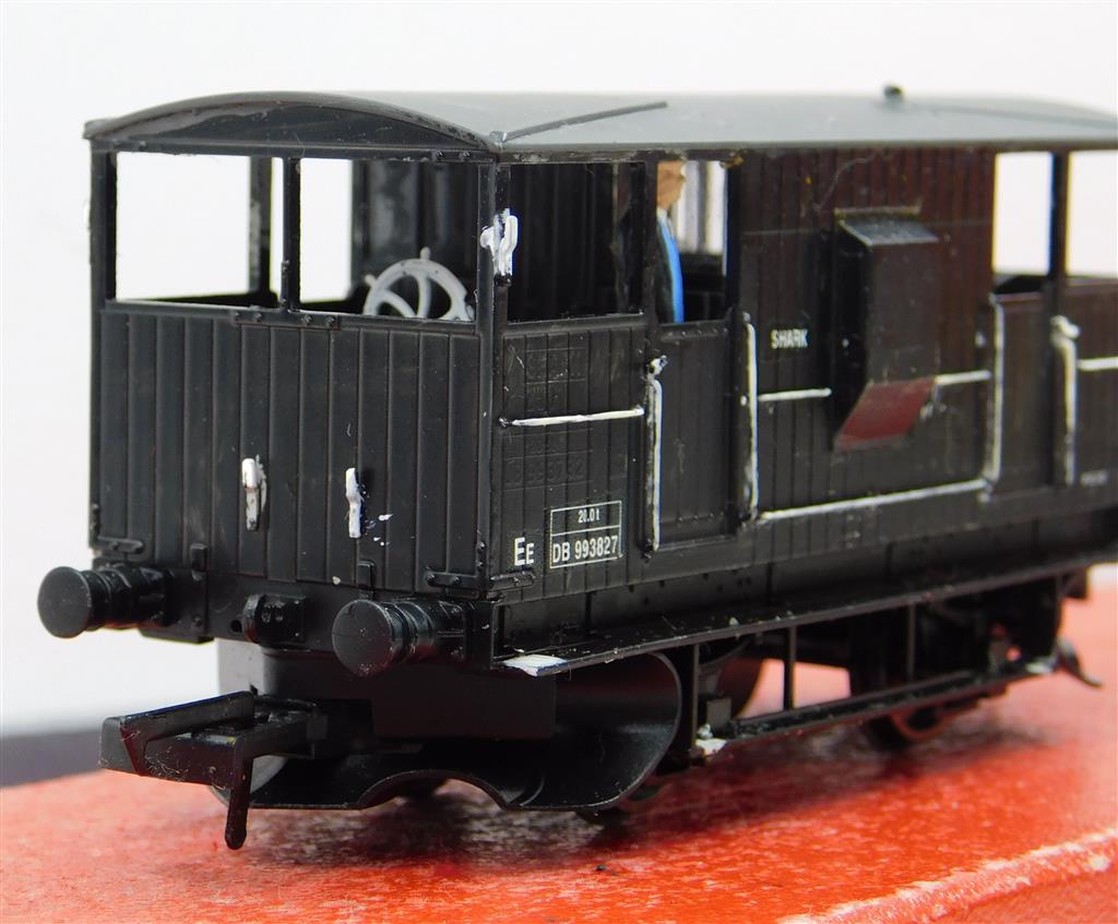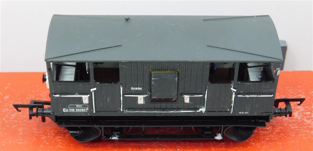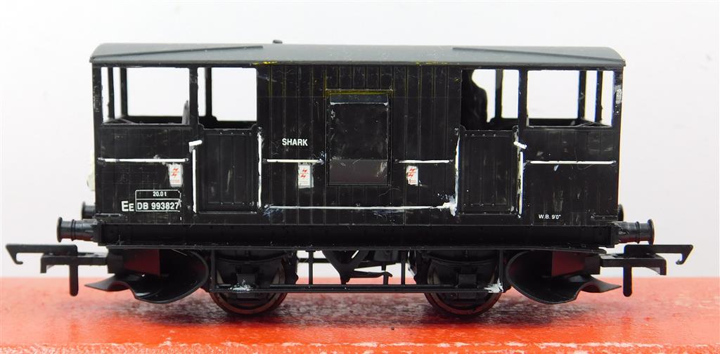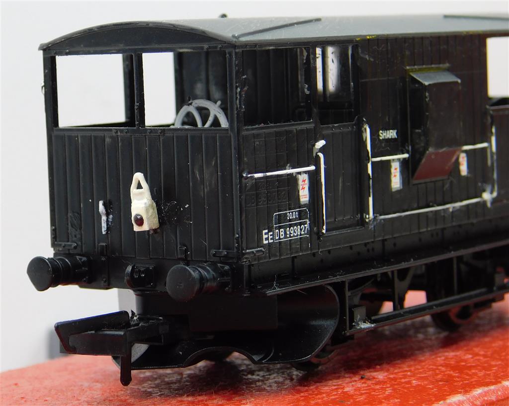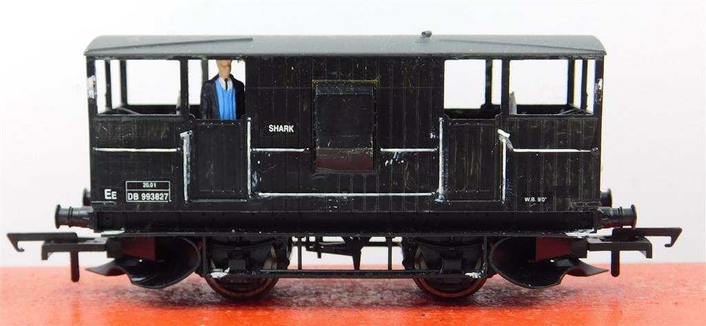 A Hornby BR Shark ballast spreading brake van number DB993827, added figure and dummy taillight, painted handrails, no original box