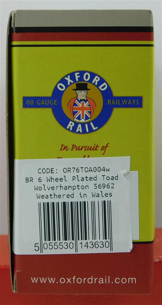 An Oxford Rail OR76TOA004w BR ex GWR 24T 6 wheel toad brake number W56962, Wolverhampton, weathered, in good condition, supplied in the original box