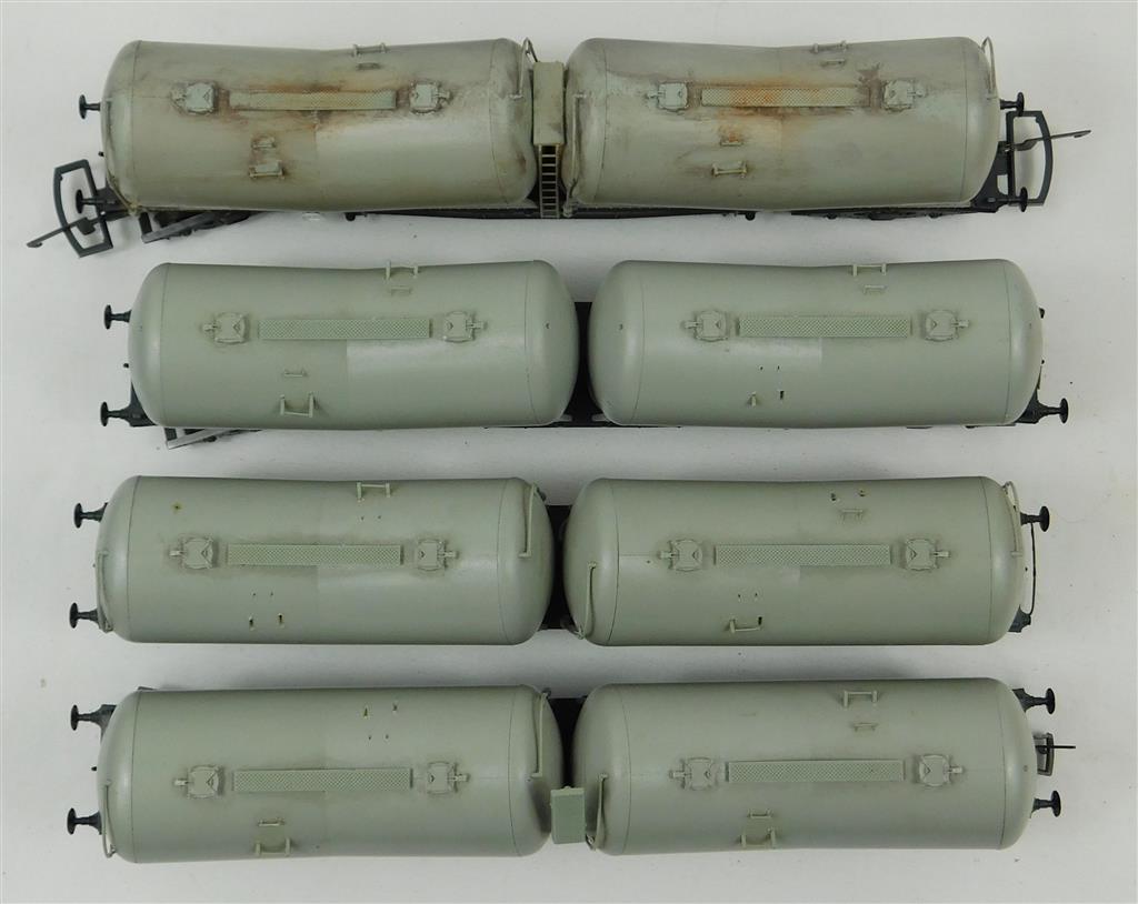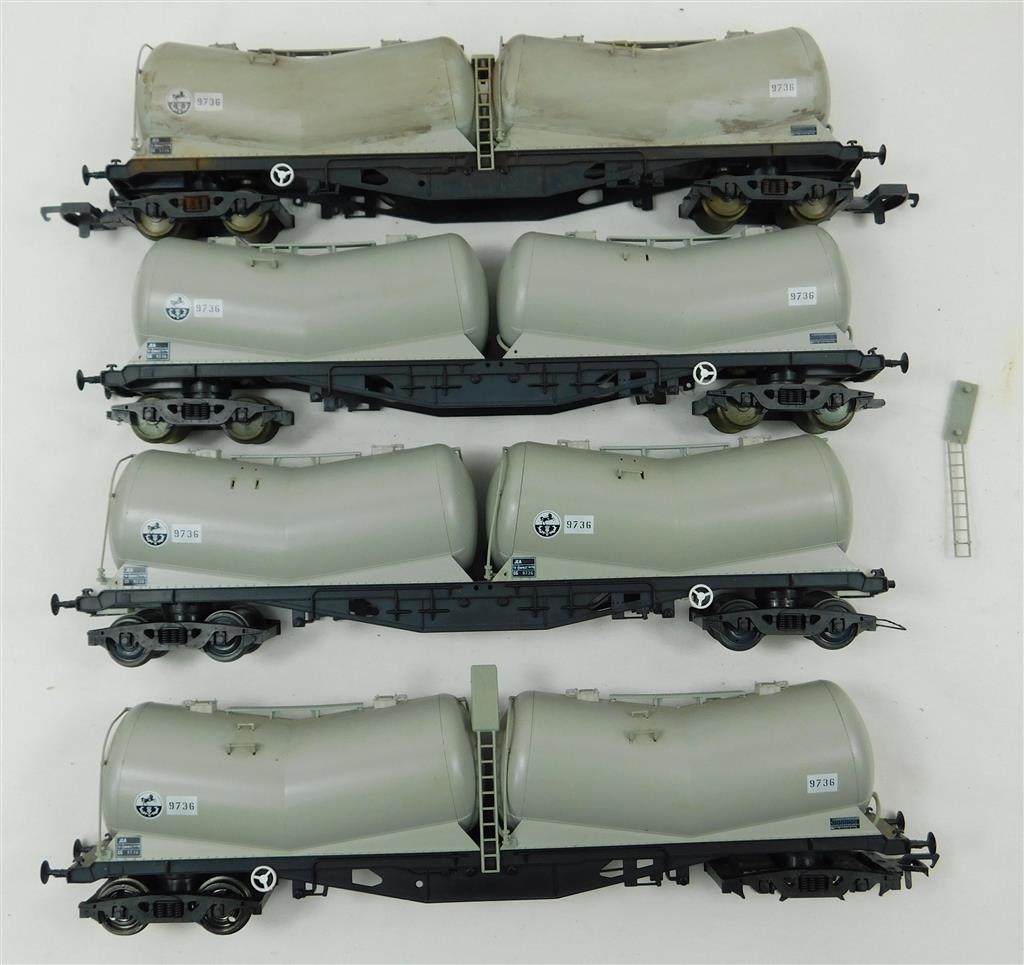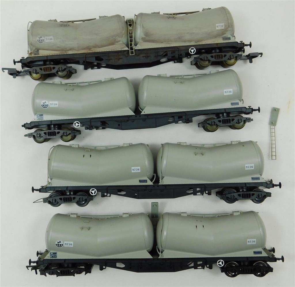 4 incomplete Lima bogie Vee Cement Tank Wagons for spares/repair, missing handrails, pipes, some buffers and couplings
