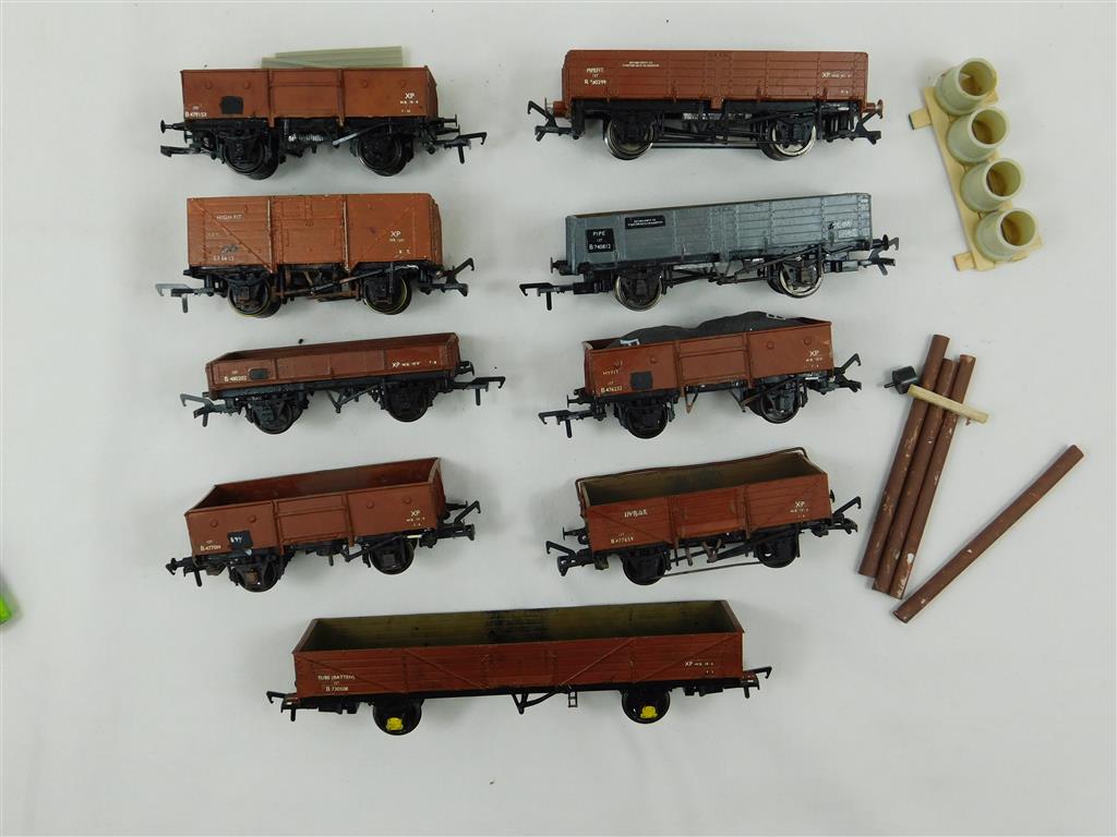 9 different kitbuilt BR open wagons, some missing buffers or tiebars, some with loads, small repairs needed, a project!