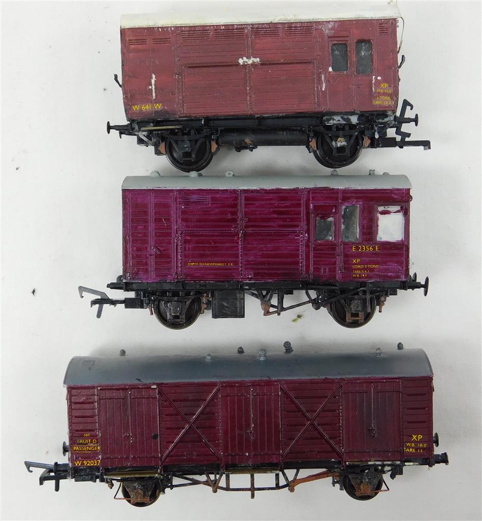 00 Wagons: 2 different kitbuilt BR horse boxes and a fruit van, some missing buffers