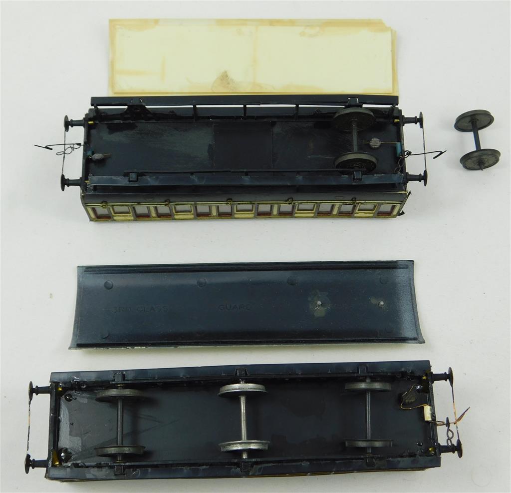 2 Kitbuilt GWR 4wheel/6wheel coaches, wire couplings, various repairs needed: chipped roof, loose wheels