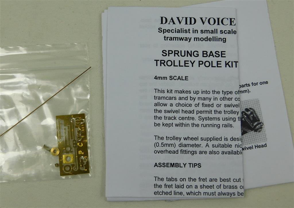 An unassembled David Voice 00 gauge tramcar sprung base trolley pole kit