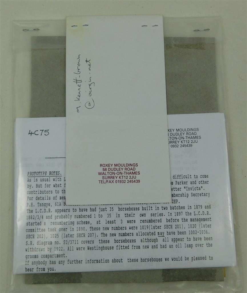 An unopened Chatham Kits 4D75 LCDR Class 4 Horse Box Etched Brass kit - etching and white metal parts