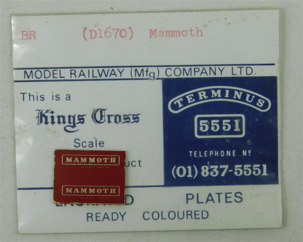 An opened but unused packet of a pair of Kings Cross D1670 Mammoth nameplates