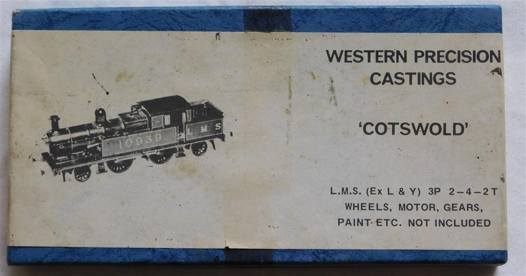 A Cotswold L&YR 2-4-2T bodyshell with some extra parts and a Mashima motor, motor runs, no wheels, one complete etch, one incomplete, heavy white metal castings, with instructions, supplied in the original box