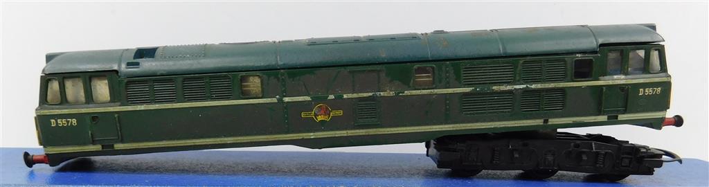 A Tri-ang Hornby class 31 bodyshell with non-powered bogie, adapted, in poor condition, needs a clean, no original box