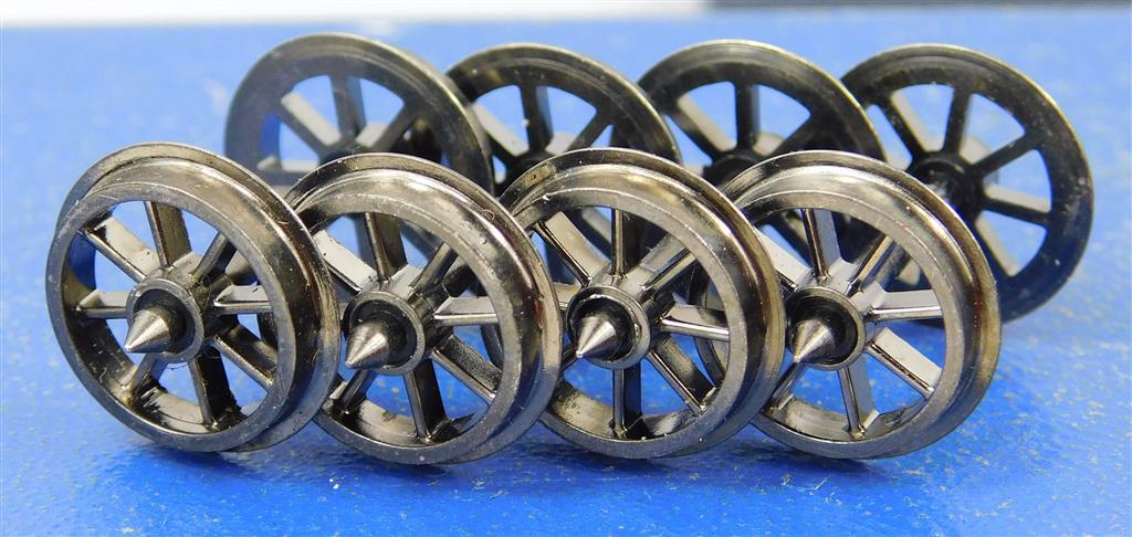 Wheels & bogies: 4 8 spoke metal wagon wheels