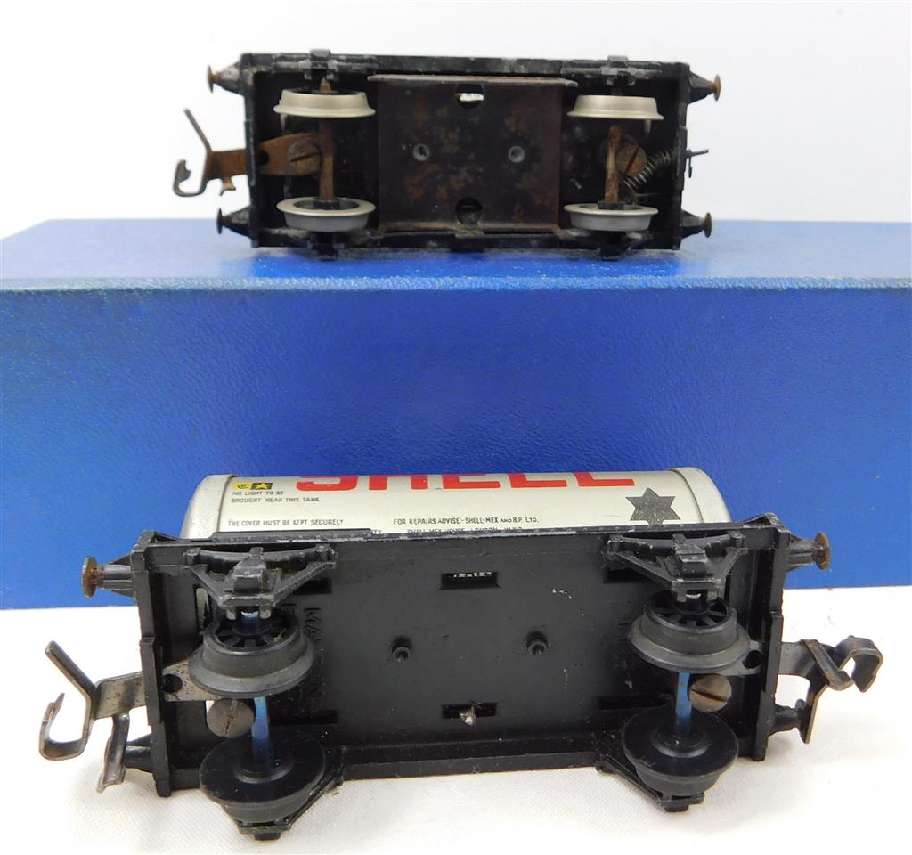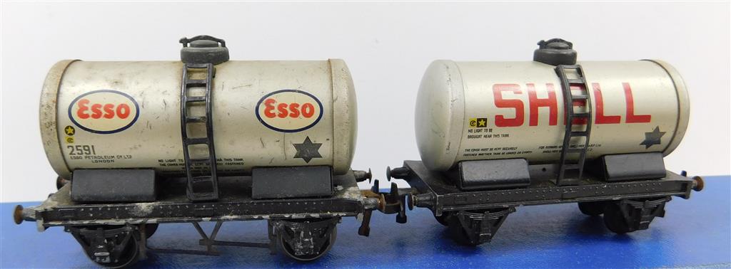 2 Trix Twin Vintage tank wagons, one with changed wheels, in fair condition, needs a clean, no original box.