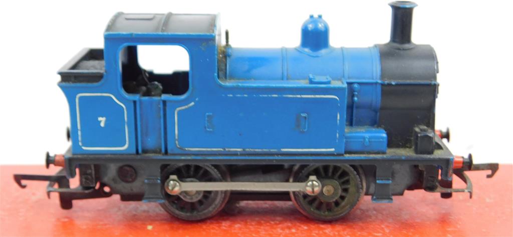 A Tri-ang Hornby Nellie, pickup needs repair as it is badly soldered and shorts, reasonable runner, needs a thorough electrical clean and lubrication, no original box. Please note this chassis needs a controller capable of delivering at least 600mA to run well, and doesn't like new Hornby or Peco points as it has deep flanged wheels.