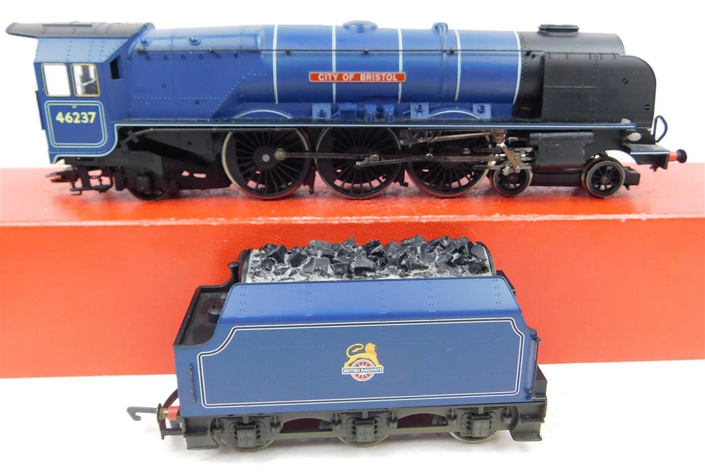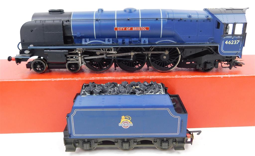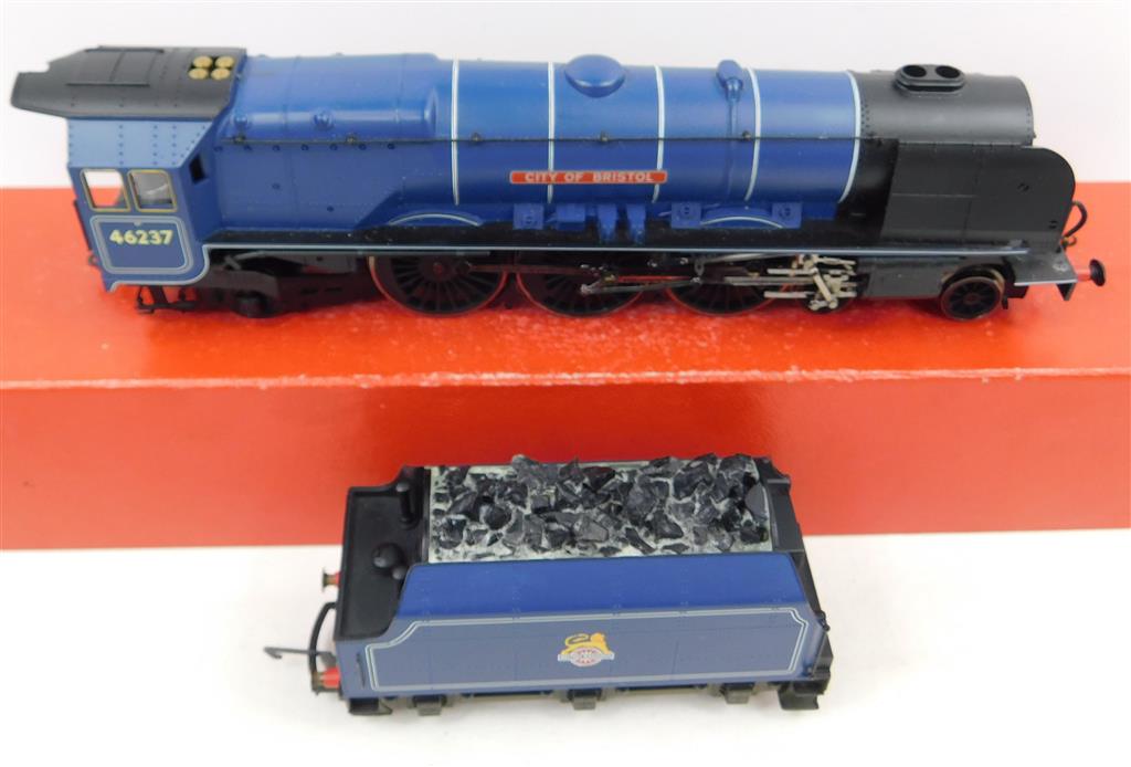 A Hornby City of Bristol, loco body damaged at cab end and white mess on the coal in the tender, good runner, may need adjustments to the electrical connections on the draw bar, no original box
