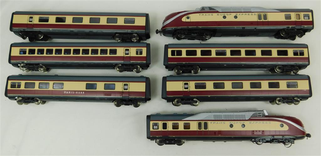 European H0 Projects: Roco 43011/43014 German 7 car DB TEE set, good runner but needs new traction tyres, a project please read