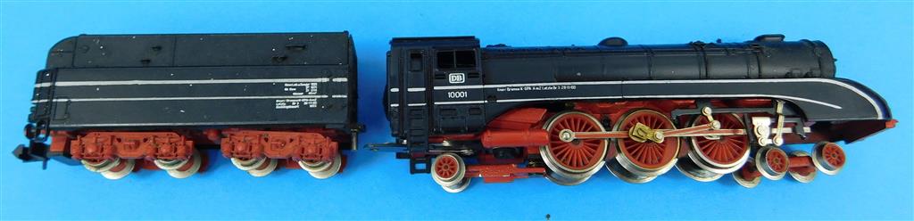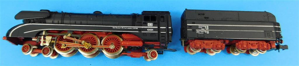A Rivarossi N gauge German DB class 10, poor runner, needs a thorough electrical clean and lubrication, missing smoke deflector, damaged front buffers, no original box, a project