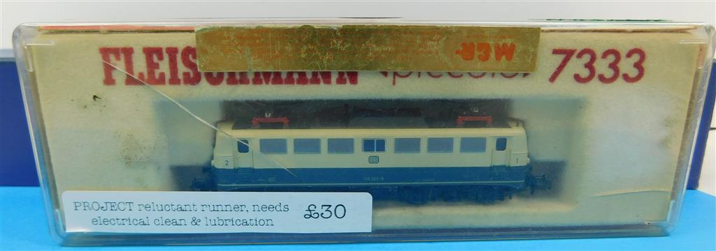 A Fleischmann N gauge 7333 German DB class 110, reluctant runner, needs a thorough electrical clean and lubrication, in good condition, supplied in the original box, a project
