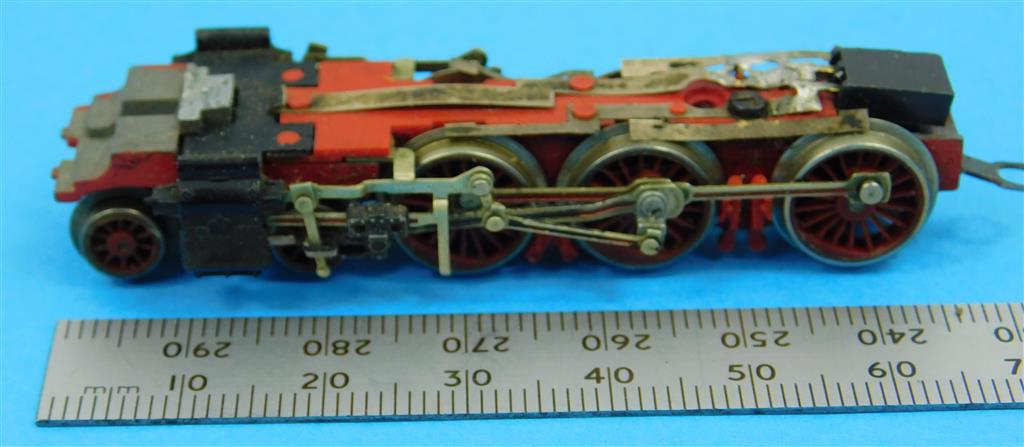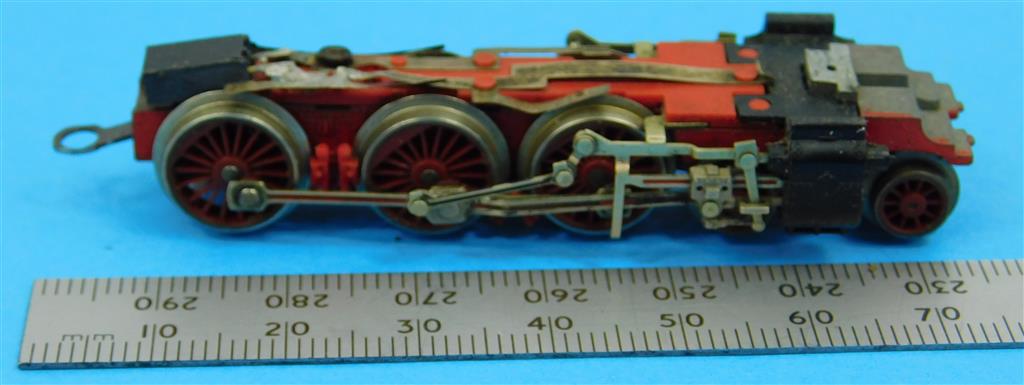 A Fleischmann N gauge class 38 non-powered chassis with cylinders and valve gear, in fair condition, no original box, a project