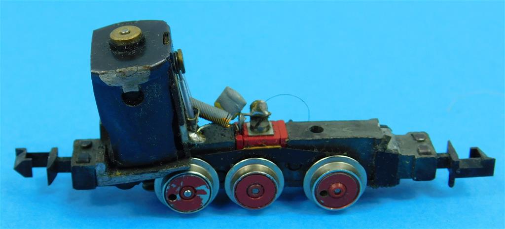 A Minitrix N gauge German T3 chassis, reluctant runner, needs a thorough electrical clean and lubrication, in fair condition, no original box