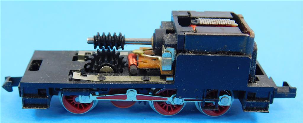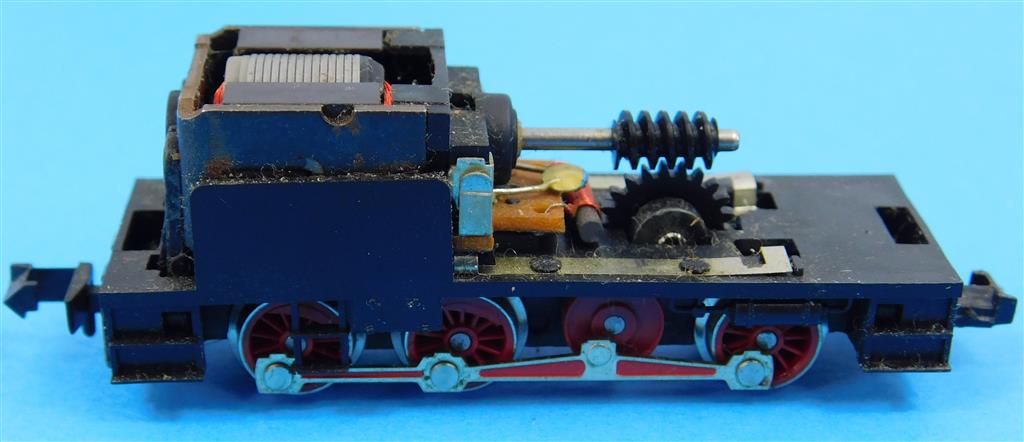 A Fleischmann N gauge electric rack loco chassis, reluctant runner, needs a thorough electrical clean and lubrication, needs a clean, in fair condition, no original box