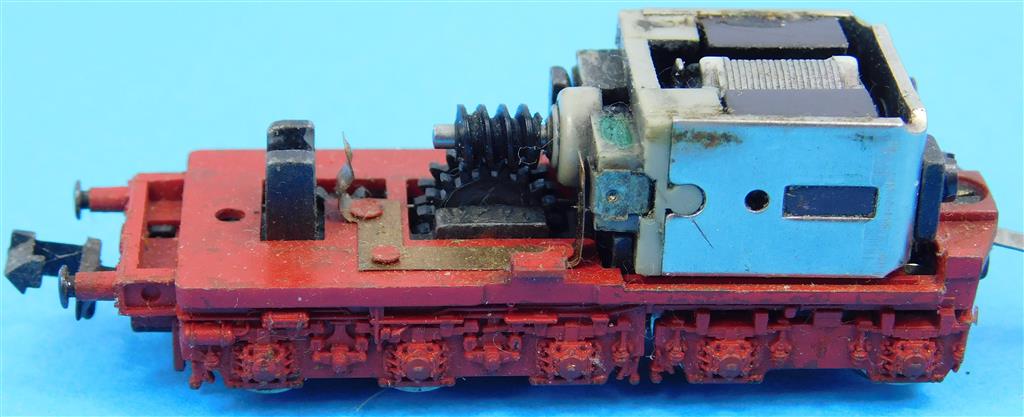 A Fleischmann N gauge tender drive chassis, reluctant runner when power applied to the motor, needs a thorough electrical clean and lubrication, needs a clean, missing wiring, in fair condition, no original box