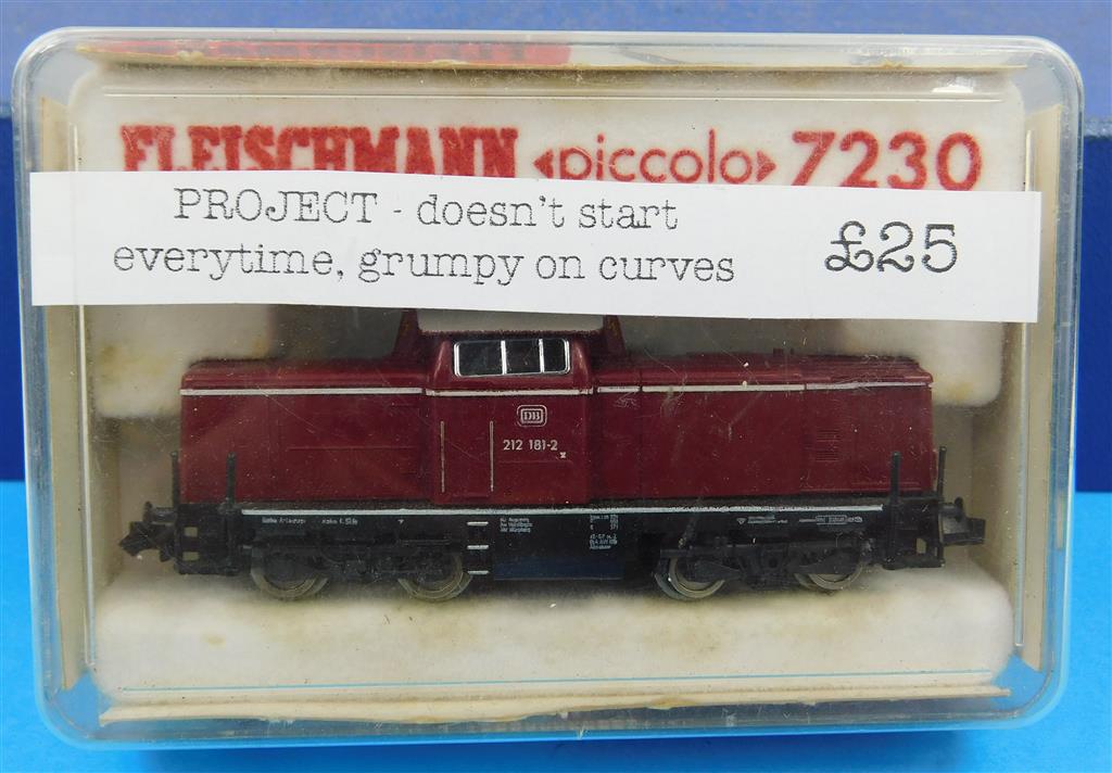 A Fleischmann 7230 N gauge class 212 diesel loco, reluctant runner, bogies need dismantling and the pickups adjusting, needs a thorough electrical clean, in fair condition, no original box