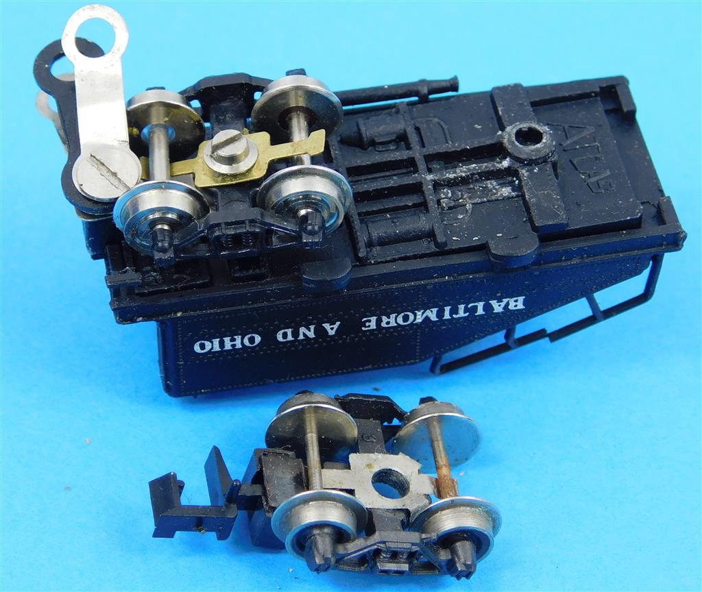 American N: Atlas N gauge switcher tender, missing bogie retaining pin