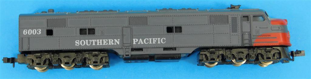 An Atlas N gauge Southern Pacific E6 diesel loco 6003, slow runner so needs a thorough electrical clean and lubrication, working headlight, in good used condition, no original box, sold as a project or a source of parts