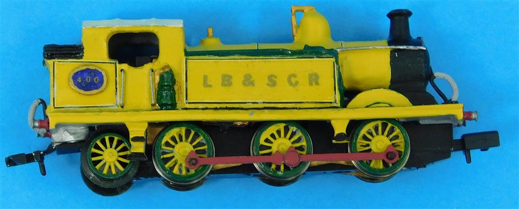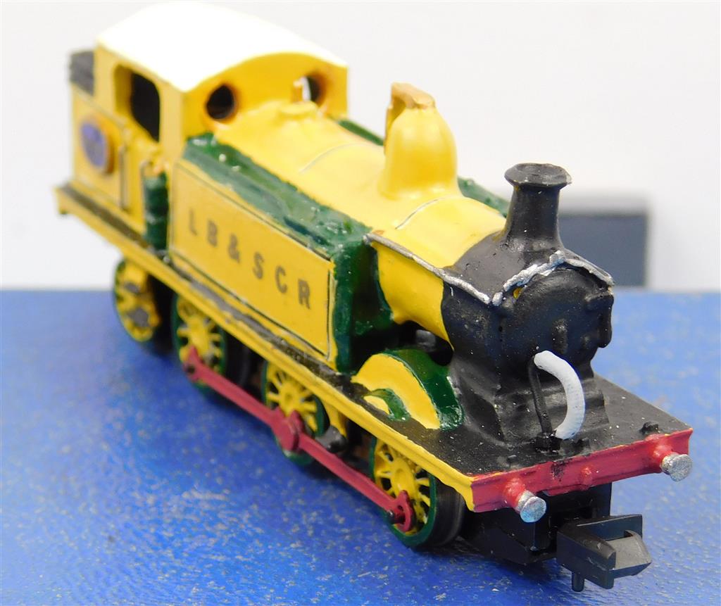 A nicely painted LBSCR 0-6-2T kit built body on Graham Farish N gauge chassis, wobbly runner, sold as a project