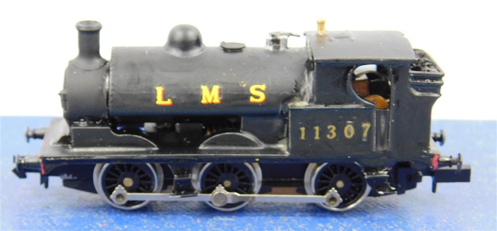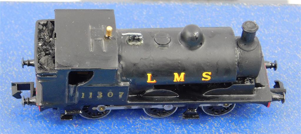 A nicely painted LMS ex L&YR Saddle Tank kit built body on Graham Farish N gauge chassis, good runner, no original box