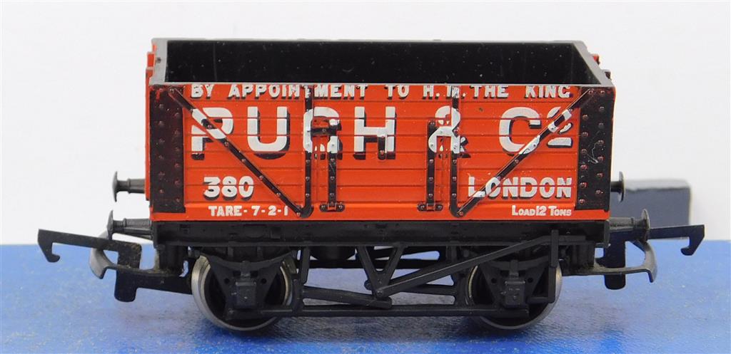 00 Wagons: Hornby R010 Pugh & Co 7 plank wagon number 380 with red bottom plank