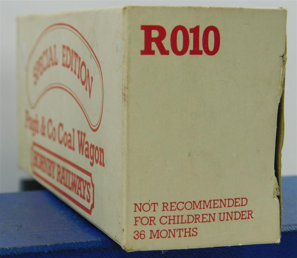 A Hornby R010 Pugh & Co 7 plank wagon number 380 with red bottom plank, in good used condition, supplied in the original box