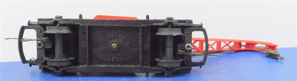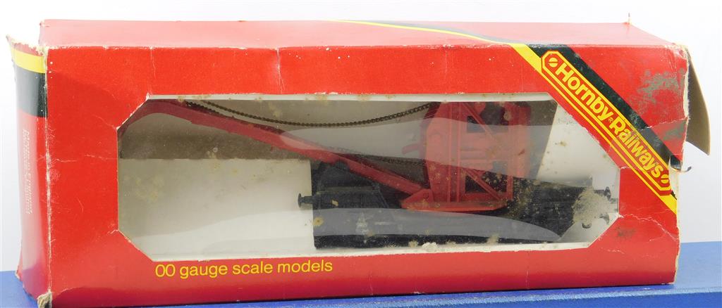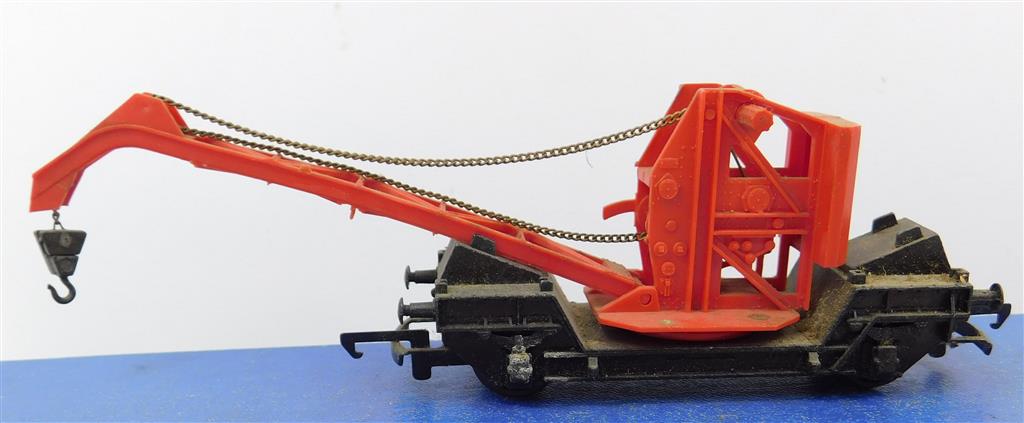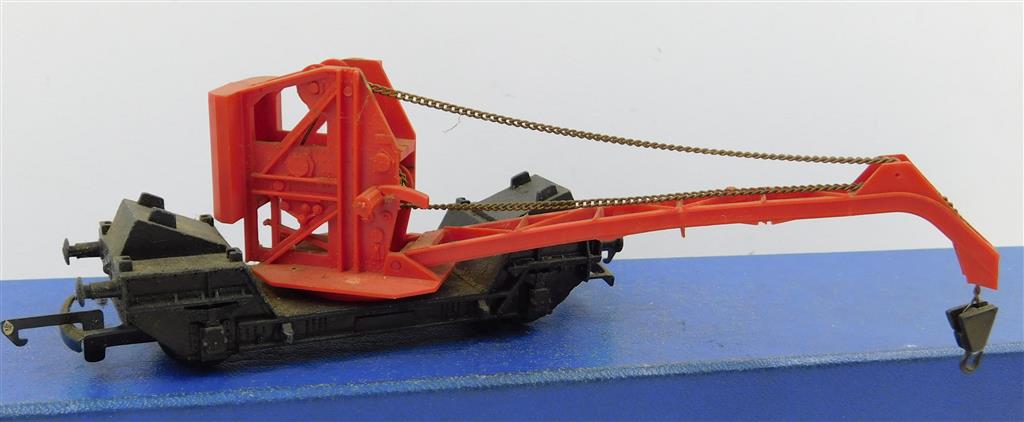 A Hornby red 4 wheel crane wagon, in fair condition, needs a good clean, no labels on the jib, supplied in the tatty original box