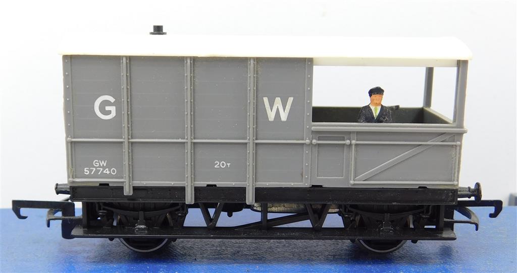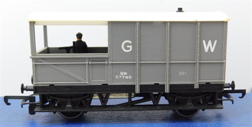 A Hornby pale grey GWR Toad Brake Van 57740 with added guard, in good condition, supplied in an incorrect original box