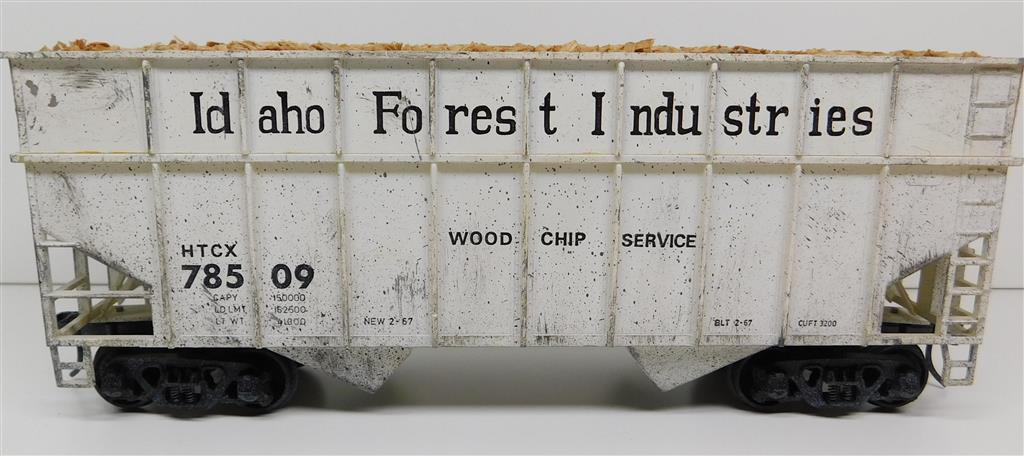 American 0 gauge: American 0 scale Idaho Forest Industries hopper car with Kadee couplings missing springs