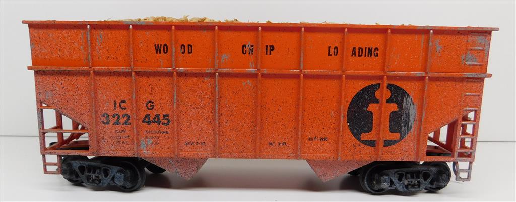 American 0 gauge: American 0 scale Wood Chip Loading hopper car with Kadee couplings ICG 322445
