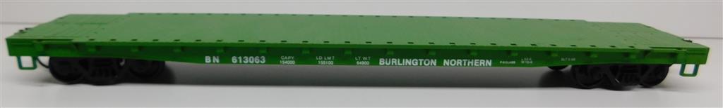 An American 0 scale Burlington Northern box car with Atlas couplings BN 613063, plastic bodied, fine scale wheels, 34cm long, in good condition, no original packaging