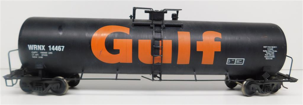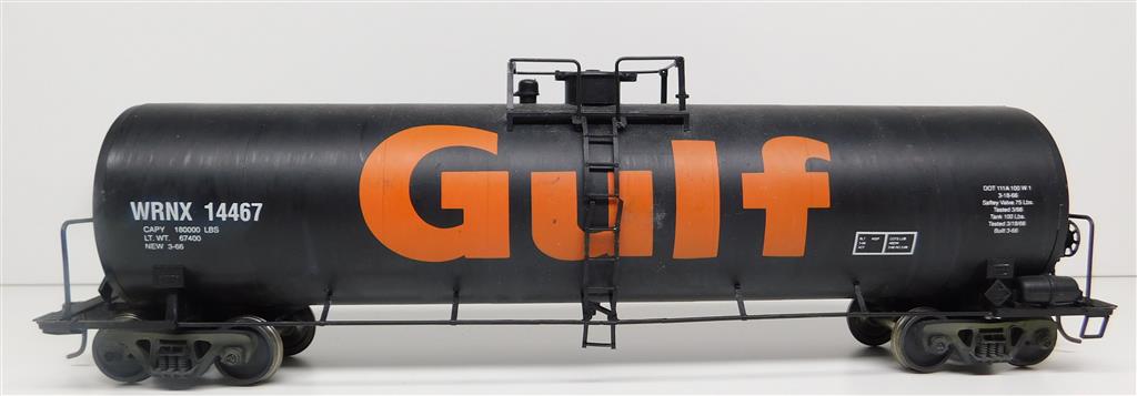 American 0 gauge: American 0 scale 31cm long Gulf tank car with Kadee couplings number WRNX 14467