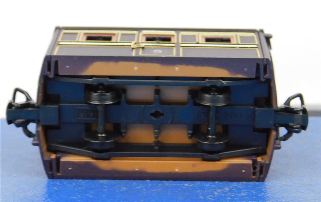 A Peco Ffestining Railway 4 wheel bug box third class coach, black, unnumbered, in good condition, no original box