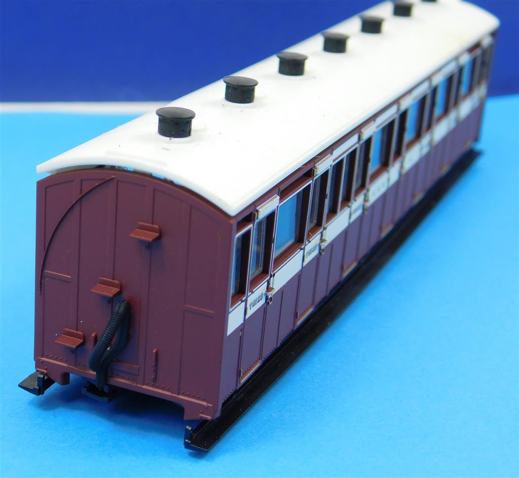 009 Narrow Gauge: Peco Lynton & Barnstaple Railway 3rd class coach number 14, missing coupling one end